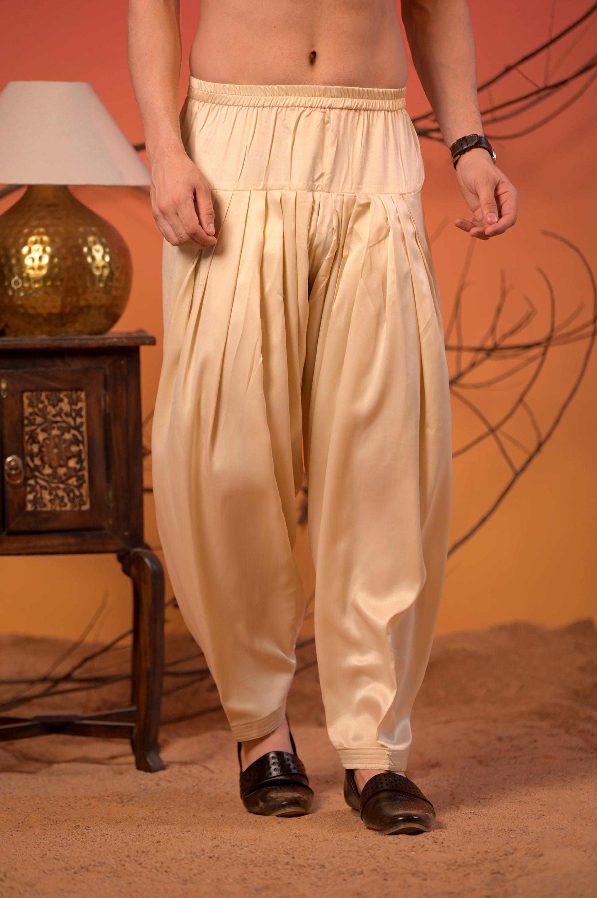 Highlighted with embroidered details on the collar and placket, this kurta is paired with a cream-colored salwar that completes the breezy look with graceful charm.